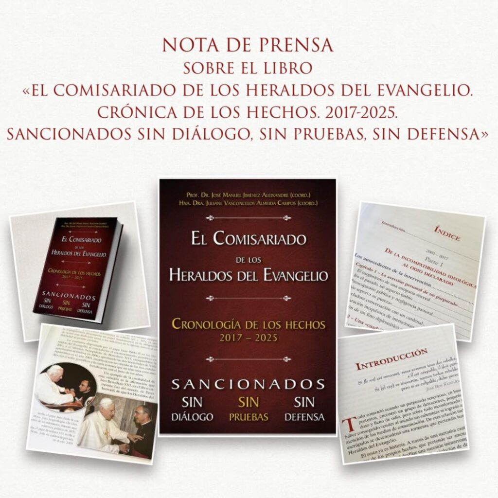 Sobre el libro El Comisariado de los Heraldos del Evangelio. Crónica de los hechos, 2017-2025. Sancionados sin diálogo, sin pruebas, sin defensa. NOTA DE PRENSA: SOBRE EL LIBRO «EL COMISARIADO DE LOS HERALDOS DEL EVANGELIO. CRÓNICA DE LOS HECHOS. 2017-2025. SANCIONADOS, SIN DIÁLOGO, SIN PRUEBAS, SIN DEFENSA» La noticia sobre la publicación del libro El […]